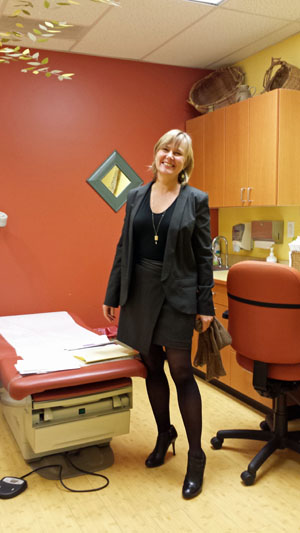So I arrived early to pick her up and instead of waiting curbside in the car I thought I’d park, walk up and surprise her. I wanted to get on that exam table so bad. I asked her to “do something” to me — blood pressure, temperature, stick a Popsicle stick in my mouth and make me say “ahh,” anything. Nope, she was having none of it. All that being well beneath her pay grade. Probably my insurance doesn’t cover spousal exams anyway.