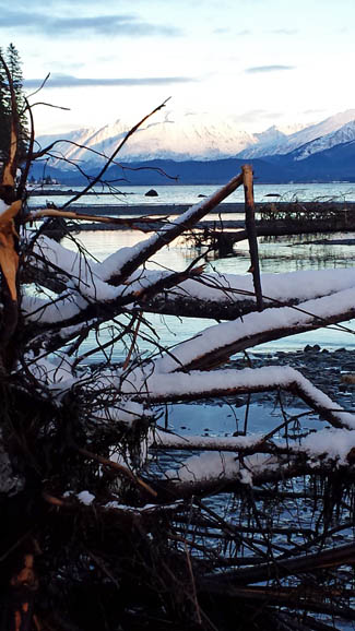 Woke to a glorious day, once it got going that is (~9:30 am). Very little snow, nearly 30 degrees, no wind. A perfect day for a hike to Tonsina Point.