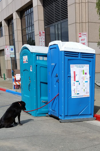 For those of you who know Chester, that’s not him outside the portapotty. I was not in there! Never knew there were so many black dogs in Anchorage.